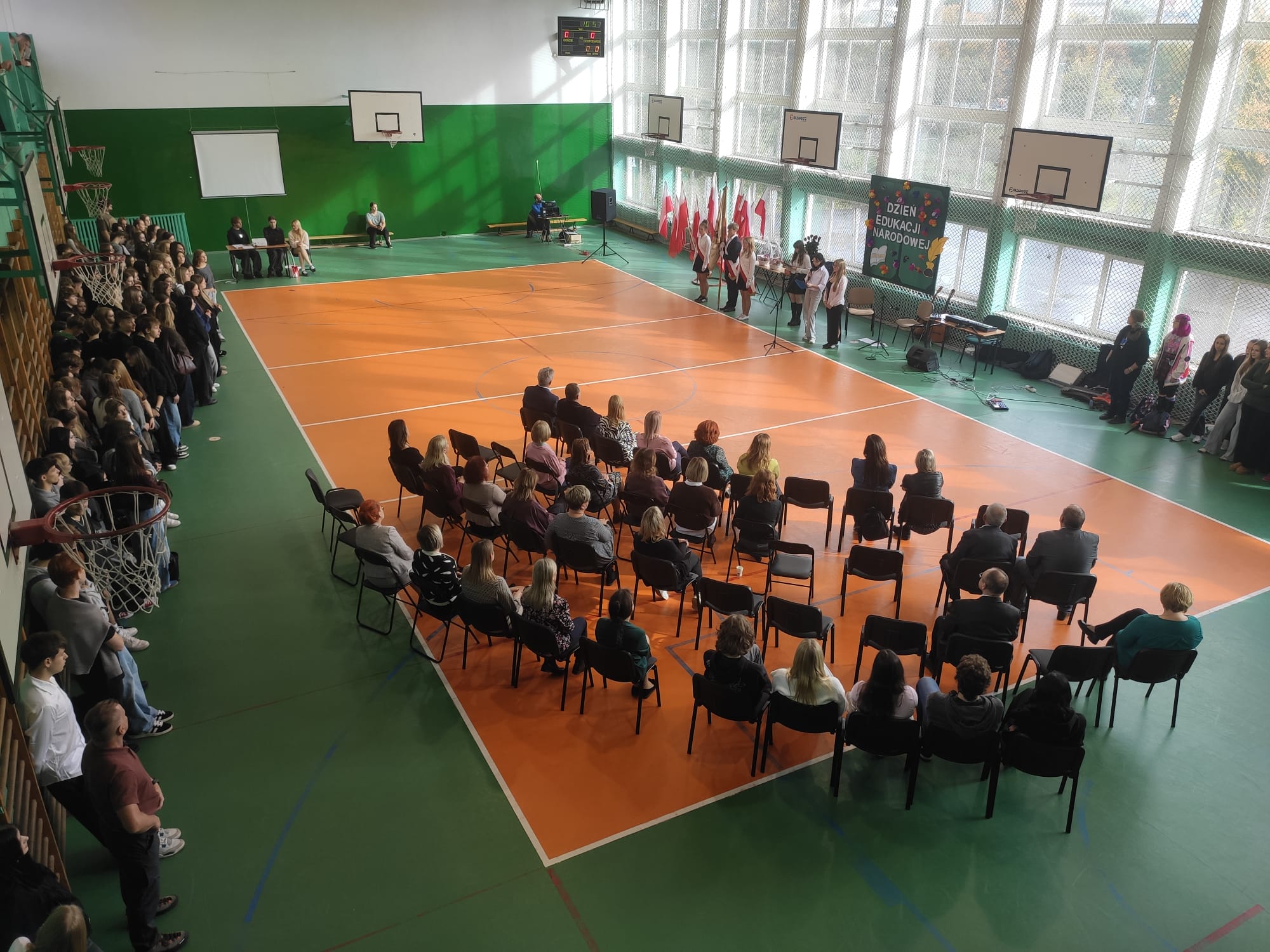 15 października w naszej szkole odbyła się uroczystość z okazji Dnia Edukacji Narodowej. Spotkaliśmy się na sali gimnastycznej, gdzie pan dyrektor wygłosił przemówienie poświęcone roli nauczyciela w kształtowaniu młodego pokolenia. Podkreślił znaczenie pracy pedagogów – pełnej pasji, cierpliwości i zaangażowania.